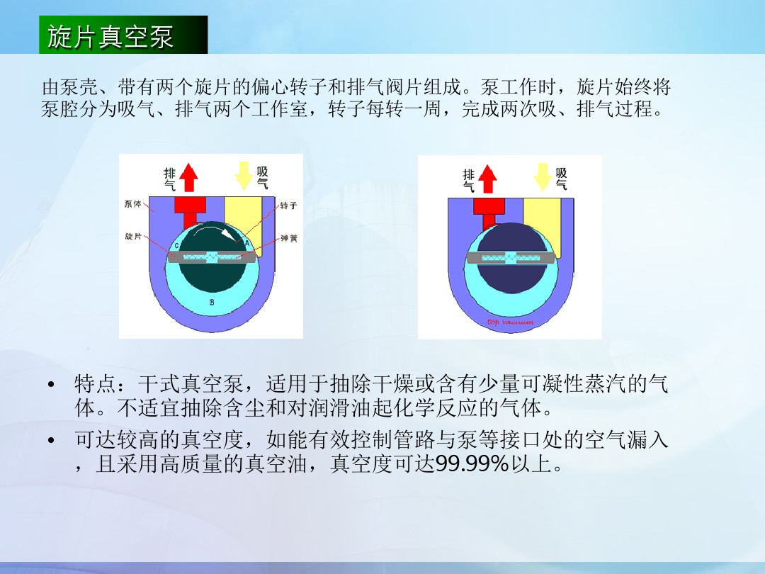 臥式泵的進氣口在上,排氣口在下。有時為了真空系統(tǒng)管道安裝連接方便,可將排氣口從水平方向接出,即進、排氣方向是相互垂直的。此時,排氣口可以從左或右兩個方向開口,除接排氣管道一端外,另一端堵死或接旁通閥。這種泵結(jié)構(gòu)重心低,高速運轉(zhuǎn)時穩(wěn)定性好。一般大、中型泵多采用此種結(jié)構(gòu)。