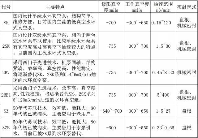 各種型式的水環(huán)式真空泵,其特點如下: