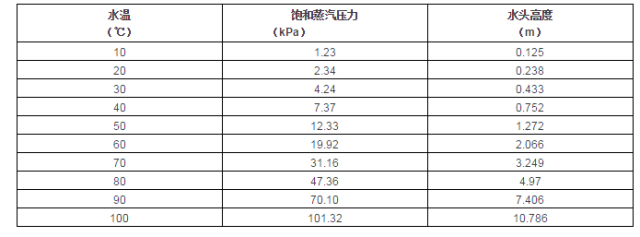 不同溫度時(shí)水的飽和蒸汽壓對(duì)應(yīng)水頭高度見(jiàn)下表: