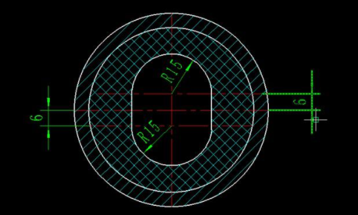 一般客戶會(huì)提供他們所需螺桿泵基本信息,比如提供每轉(zhuǎn)排量為40,級(jí)數(shù)為42級(jí)。我們就以排量為40,級(jí)數(shù)為42級(jí)為例。當(dāng)我們知道排量后,我們就去確定轉(zhuǎn)子的外徑與偏心距,還有頭數(shù)。因?yàn)榕帕繛?0,是小排量,我們這里選擇單頭轉(zhuǎn)子,那么定子就是雙頭的。然后通過(guò)公式Q=4eDT,分別選擇合適的偏心距、外徑和導(dǎo)程。這里我們選擇,偏心距為3mm,外徑為30mm,導(dǎo)程為110mm,排量Q=4*3*30*110/1000=39.6立方厘米。理論排量與實(shí)際排量相近即可,不用一模一樣。那么定子的截面圖就可出來(lái)了,如下所示: