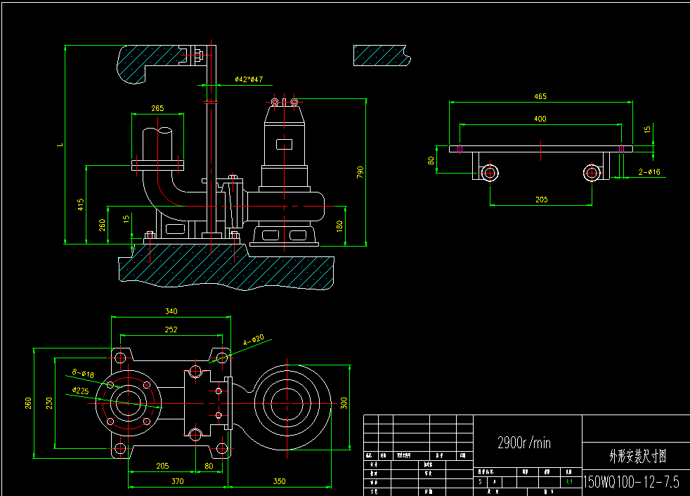 在選型確認后,潛污泵的廠家會提供安裝條件圖,設(shè)計人員需要能讀懂各尺寸和符號的意思。舉例說明如下: