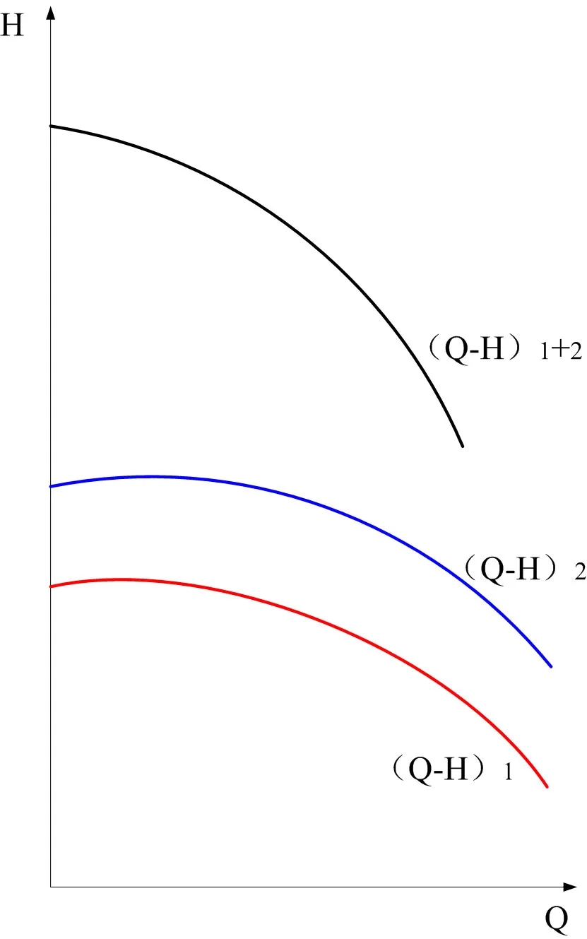 把橫坐標(biāo)流量相等的點(diǎn),縱坐標(biāo)相加,得到總的流量-揚(yáng)程曲線(Q-H)1+2