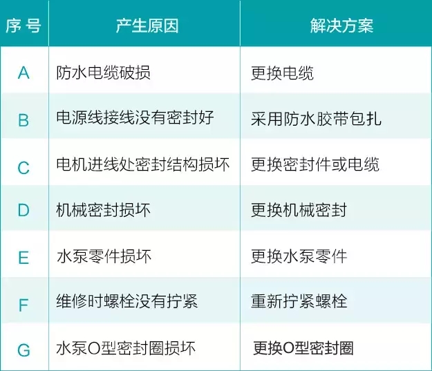2、水泵電機(jī)電源線接線沒(méi)有密封好進(jìn)水;