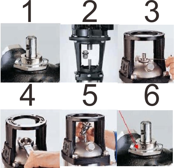 六、重新放置機械密封后,分別按照步驟四、三、二去操作將機械密封固定后。固定好動環(huán)后,首先上好電機,然后再固定聯(lián)軸器。在固定聯(lián)軸器之前,請務(wù)必記得用贈送的機封墊片將軸提升一定距離,否則轉(zhuǎn)動不靈活平穩(wěn)。
