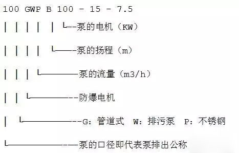 Q:潛水W:排污G:管道Y:液下N:泥漿Z:自吸L:立式AS:撕裂JY:攪勻P:不銹鋼B:防爆QW(WQ)無堵塞潛水式排污泵