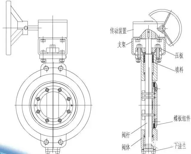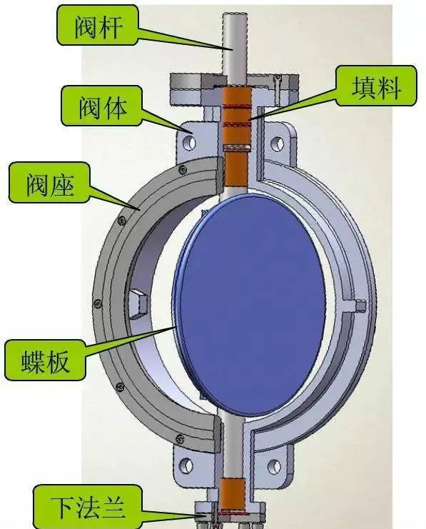 蝶閥主要由閥體、活體、閥軸、軸承、密封裝置、操作機構(gòu)及附屬部件組成。