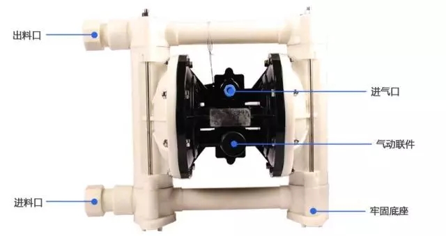 氣動雙隔膜泵的特點和單隔膜泵的類似,只不過雙隔膜泵指雙吸液腔,單隔膜泵就一個吸液腔。