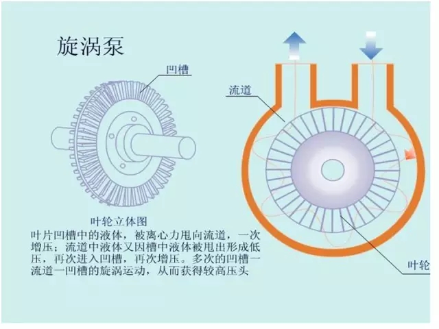 漩渦泵的工作原理、結(jié)構(gòu)以及特性曲線的形狀等均與離心泵不同,是一種小流量、高揚(yáng)程的泵,其比轉(zhuǎn)速一般小于40。