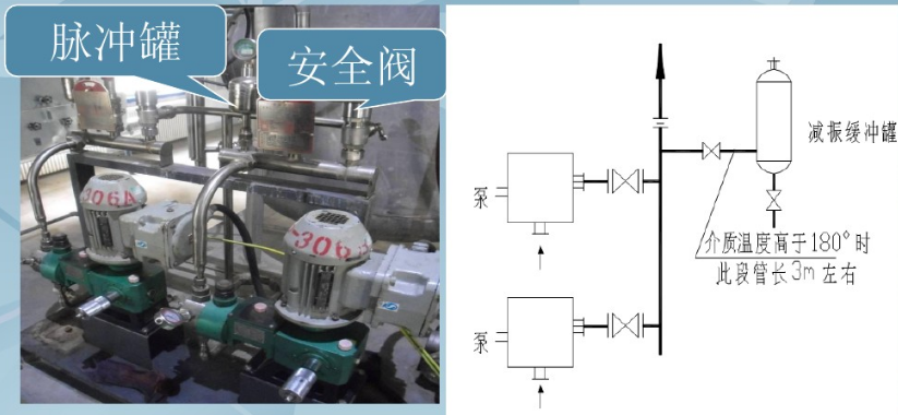 泵的保護(hù)管線一安全閥線:對(duì)于電動(dòng)往復(fù)泵和旋轉(zhuǎn)泵,應(yīng)在出口側(cè)設(shè)安全閥,當(dāng)出口壓力超過(guò)定壓值時(shí),安全閥啟跳,流體返回入口側(cè)。管線應(yīng)盡量布置緊湊,且不影響操作。