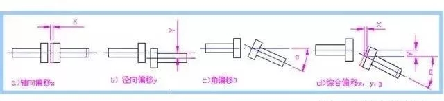 對(duì)于剛性固定式聯(lián)軸器,由于制造安裝誤差,軸變形及溫度變化等原因,使兩軸不能保證嚴(yán)格對(duì)中,而存在不同程度的偏移或偏斜。若用剛性聯(lián)軸器將引起附加動(dòng)載荷,要求聯(lián)軸器或離合器從結(jié)構(gòu)上適應(yīng)各種形式的偏移,以保證正常工作。