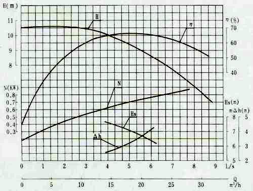 其中H為揚(yáng)程,單位m,Q為流量,單位為m3/h,η為泵的效率.P為軸功率,單位KW. 也就是泵的軸功率P=ρgQH/1000η(kw),其中的ρ=1000Kg/m3,g=9.8