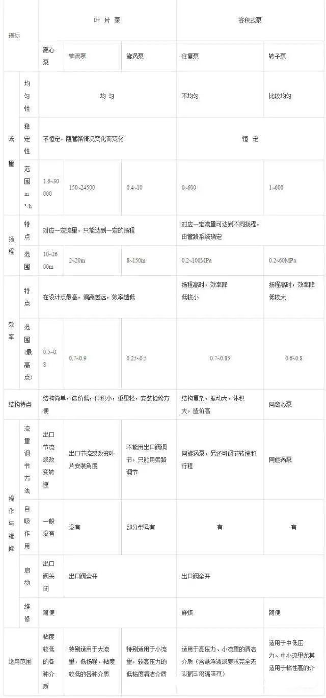 掌握各種泵機(jī)的工作原理是針對(duì)給定應(yīng)用環(huán)境下正確選定機(jī)型的良好開端。雖然各種選擇方案之間的區(qū)別并不一定十分清晰分明,運(yùn)行和容量上的基本區(qū)別便可以用于指導(dǎo)選型。