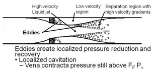 旋塞閥的氣蝕破壞的預(yù)測更為復(fù)雜,不是簡單地計算的阻流壓降。經(jīng)驗表明,有可能是主液流中的壓力下降到該液體的蒸氣壓為區(qū)域的局部汽化和蒸汽泡崩潰之前。有些閥門制造商預(yù)測年初蝕破壞的通過定義一個初期損傷壓降。一個閥制造商的預(yù)測氣蝕損壞的開始方法,是基于這樣的事實,這是蒸汽氣泡塌陷,導(dǎo)致空蝕及噪音。廠商已確定,如果計算的噪音水平低于下列限制,將可避免重大氣蝕破壞。