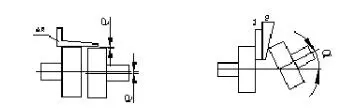 1. 利用直角尺測量聯(lián)軸器的同軸度(徑向位移),利用平面規(guī)和楔形間隙規(guī)來測量聯(lián)軸器的平行度(角向位移),這種方法簡單,應(yīng)用比較廣泛,但精度不高,一般用于低速或中速等要求不太高的運(yùn)行設(shè)備上。如圖示: