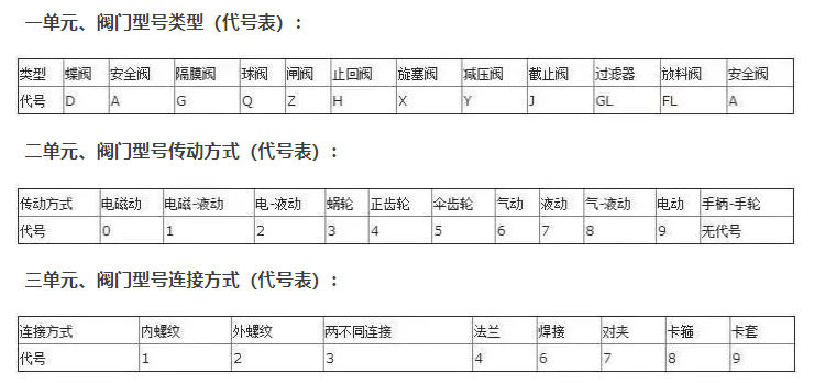 當今閥門的類型和材料種類越來越多,閥門型號的編制也愈來愈復雜;閥門型號通常應表示閥門類型、驅(qū)動方式、連接形式、結(jié)構(gòu)特點、公稱壓力、密封面材料、閥體材料等要素。閥門型號的標準化對閥門的設計、選用、經(jīng)銷,提供了方便。我國雖然有閥門型號編制的統(tǒng)一標準,但逐漸不能適應閥門工業(yè)發(fā)展的需要;目前,閥門制造廠一般采用統(tǒng)一的編號方法;不能采用統(tǒng)一編號方法的,各生產(chǎn)廠家可按自己的情況制訂出編號方法。