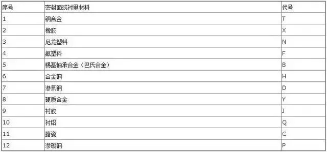 2、當閥座和閥瓣(閥板)密封材料不同時,用低硬度材料代號表示(隔膜閥除外)。