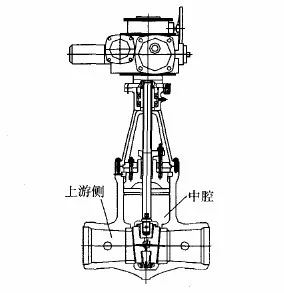 采用外設(shè)帶截止閥的旁路聯(lián)通中腔與上游側(cè),當(dāng)主閘板關(guān)閉后截止閥可關(guān)閉(視中腔溫度變化情況,過高時須開啟)。當(dāng)開啟主閘閥時,應(yīng)先行開啟旁路截止閥,降低中腔壓力后再啟動主閘閥。