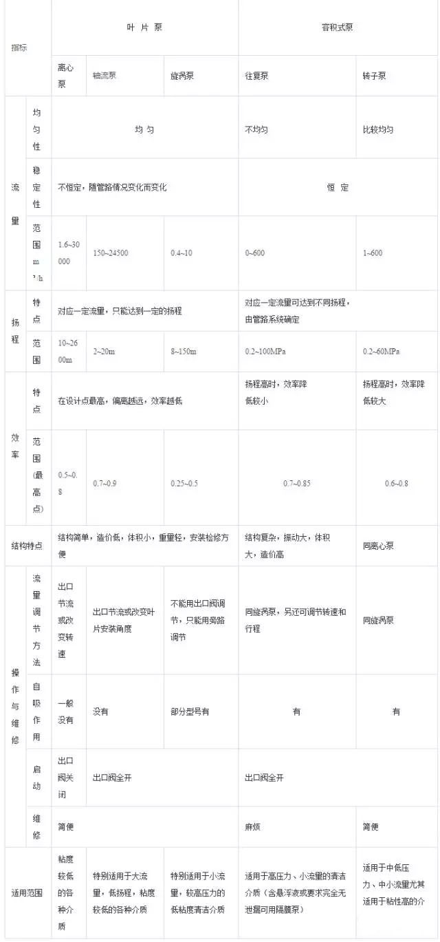 掌握各種泵機的工作原理是針對給定應(yīng)用環(huán)境下正確選定機型的良好開端。雖然各種選擇方案之間的區(qū)別并不一定十分清晰分明,運行和容量上的基本區(qū)別便可以用于指導(dǎo)選型。