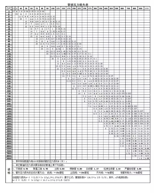 沿程損失與管壁粗糙度有關(guān)的沿程摩擦系數(shù)成正比關(guān)系,不同的管材其粗糙度不同,鑄鐵管比較粗糙,沿程摩擦系數(shù)就大些;塑料管比較光滑,沿程摩擦系數(shù)就小些。與管子長(zhǎng)度成正比關(guān)系;與管徑成反比關(guān)系,就是說(shuō),當(dāng)流量一定時(shí),管徑小、流速快,則沿程損失大;還與流速的平方值成正比關(guān)系。當(dāng)然計(jì)算比較繁瑣,簡(jiǎn)單的方法可以估算。