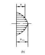 由式可知管內(nèi)流速u(mài)沿半徑方向按拋物線(xiàn)規(guī)律分布,最大流速在軸線(xiàn)上,其值為: