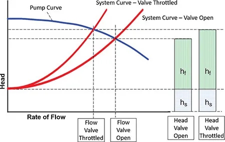 圖1:顯示靜壓頭和摩擦壓頭的泵曲線和系統(tǒng)曲線(圖片由水力協(xié)會(huì)提供)