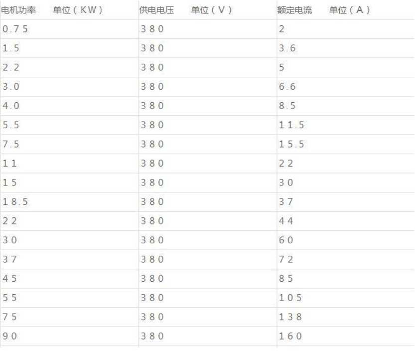 排污泵電機(jī)功率與電流對照表,電機(jī)功率單位(KW)供電電壓單位(V)額定電流單位(A)