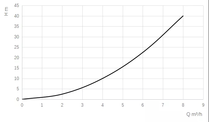 排污泵自身有一個(gè)性能曲線,標(biāo)志著水泵可以工作在哪些工況點(diǎn)上,例如如下這個(gè)水泵曲線: