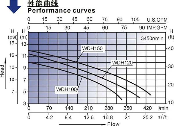 這種性能曲線適用于流量調(diào)節(jié)范圍較大,而壓力變化較小的系統(tǒng),也就是對揚程要求變化較小、流量變化要求相對較低的系統(tǒng)中。大多數(shù)泵如IS單級離心泵、D型泵、雙吸泵、IH化工離心泵等曲線的都是比較平坦的。