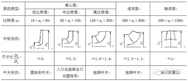 比轉(zhuǎn)速小于23的般為旋渦泵,比轉(zhuǎn)速大于23小于300的泵,般為離心泵(比轉(zhuǎn)速=23~80為低比轉(zhuǎn)速,比轉(zhuǎn)速=80~150為中比轉(zhuǎn)速,比轉(zhuǎn)速=150~300為高比轉(zhuǎn)速);大于300小于500的泵般為混流泵;大于500小于1500的泵般為軸流泵。