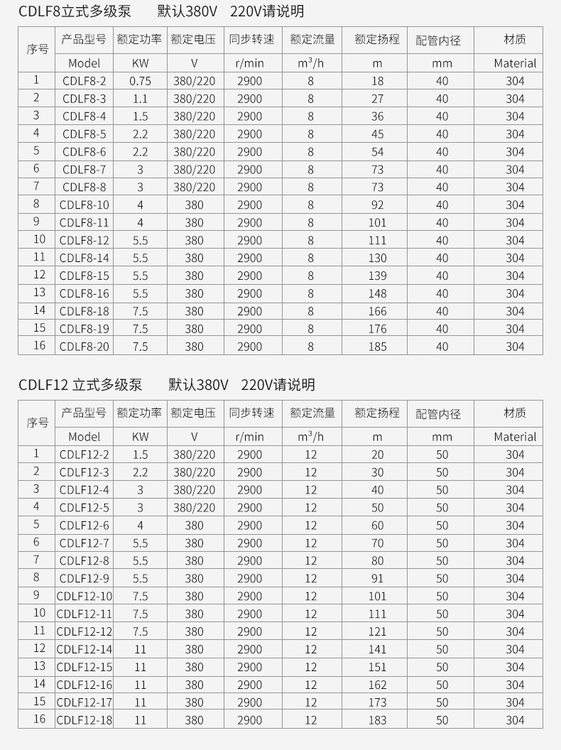 CDLF多級離心泵單泵智能變頻性能參數(shù):