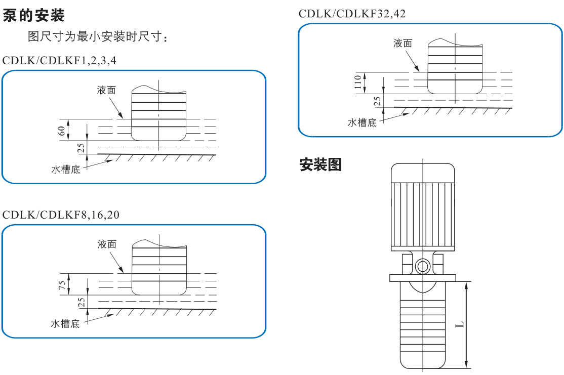CDLK/CDLKF用于輸送機床冷卻液、潤滑液冷凝水輸送、工業(yè)清洗設(shè)備和其它適合浸入式泵使用的場合,適應(yīng)于不同溫度、流量和壓力范圍,CDLK適用于無腐蝕性液體,CDLKF適用于輕度腐蝕性液體。