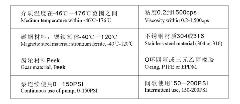CQCB型不銹鋼磁力齒輪泵采用優(yōu)質(zhì)不銹鋼304或316的泵殼和PPS塑料齒輪,填充聚氟乙烯等耐腐蝕材料,精密制造加工而成。齒輪用氟塑制造,具有結(jié)構(gòu)簡單、外形美觀、低噪音、穩(wěn)壓力、準(zhǔn)流量、帶自吸、加上無泄漏密封結(jié)構(gòu)設(shè)計(jì),永磁聯(lián)軸的驅(qū)動(dòng),確保流體的安全輸送,可用于各種液體的取樣、制藥、計(jì)量、冷卻、輸送、分發(fā),循環(huán),罐裝等。磁力驅(qū)動(dòng)齒輪泵(磁力泵)廣泛的應(yīng)用于:制藥機(jī)設(shè)備、醫(yī)療設(shè)備、醫(yī)用滲透析設(shè)備、激光儀器、制冷系統(tǒng)、微型冷卻裝置、取樣儀器、食品加工設(shè)備、實(shí)驗(yàn)用儀器、水凈化和超過濾系統(tǒng)噴碼杋、噴繪機(jī)制造、髙性能彩色卬刷機(jī)、紙煙煙絲香料添加、膠片制造半導(dǎo)體制造等行業(yè)。