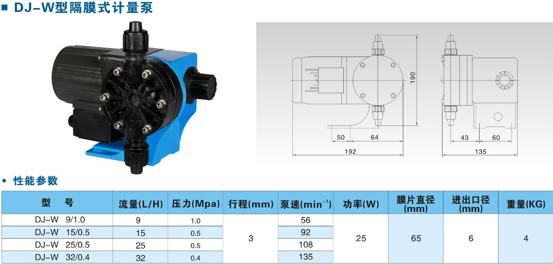 本系列產品原理特性是由電機通過渦輪蝸桿驅動的機械隔膜式計量泵,適用于低壓場合的流體計量。