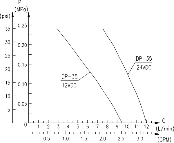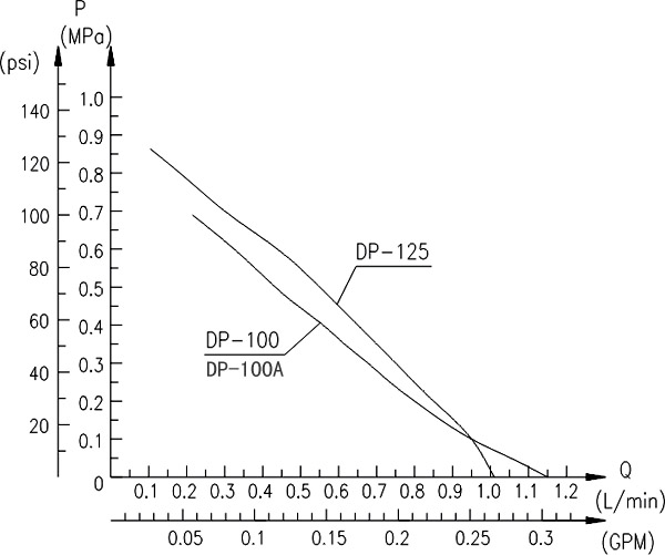 【DP型微型隔膜泵】性能曲線圖: