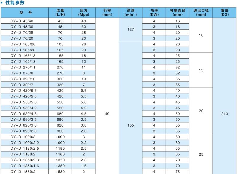 DY-D液壓隔膜計(jì)量泵性能參數(shù):