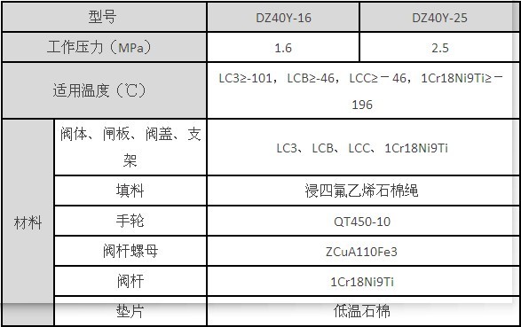 DZ40Y低溫閘閥性能參數(shù):