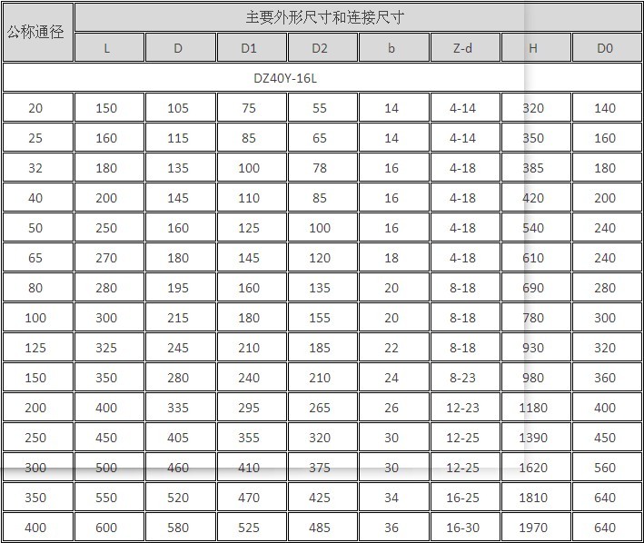 DZ40Y低溫閘閥尺寸: