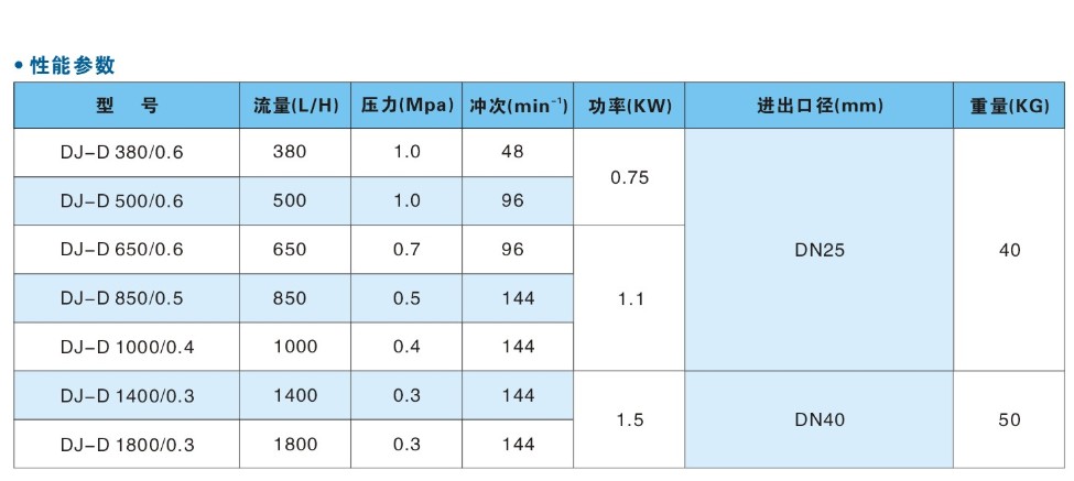 GB(DJ-D)系列機(jī)械隔膜式計(jì)量泵性能參數(shù):