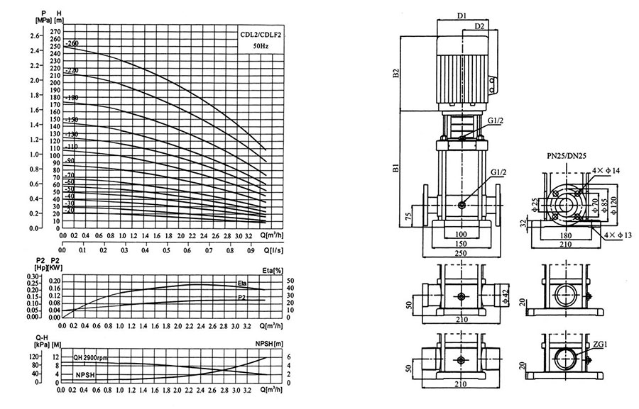 CDLF,QDLF立式輕型多級(jí)離心泵產(chǎn)品結(jié)構(gòu)及性能曲線圖:
