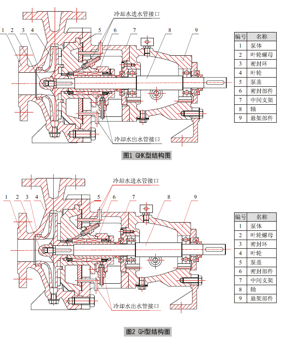 GHK型化工泵是全國泵行業(yè)采用ISO國際標準聯(lián)合設計的系列產品,其主要由泵體、密封環(huán)、葉輪螺母、泵蓋、密封部件、中間支架、軸、懸架部件等組成。