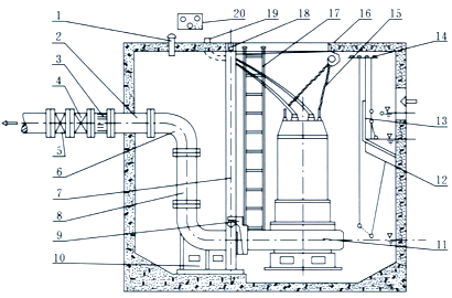 JYWQ自動攪勻排污泵自動藕合式安裝示意圖: