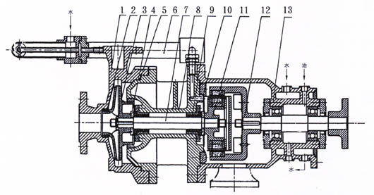6、泵運行1500小時后,應拆檢軸承和端面動環(huán)的磨損情況,并更換不宜再用的易損件。