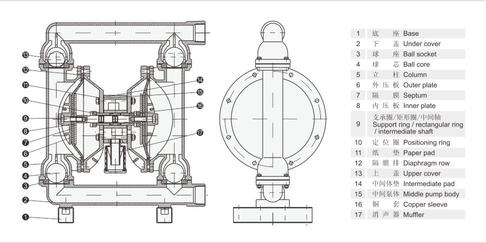 QBK氣動隔膜泵結構圖: