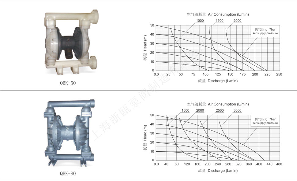 QBK氣動(dòng)隔膜泵性能曲線圖:
