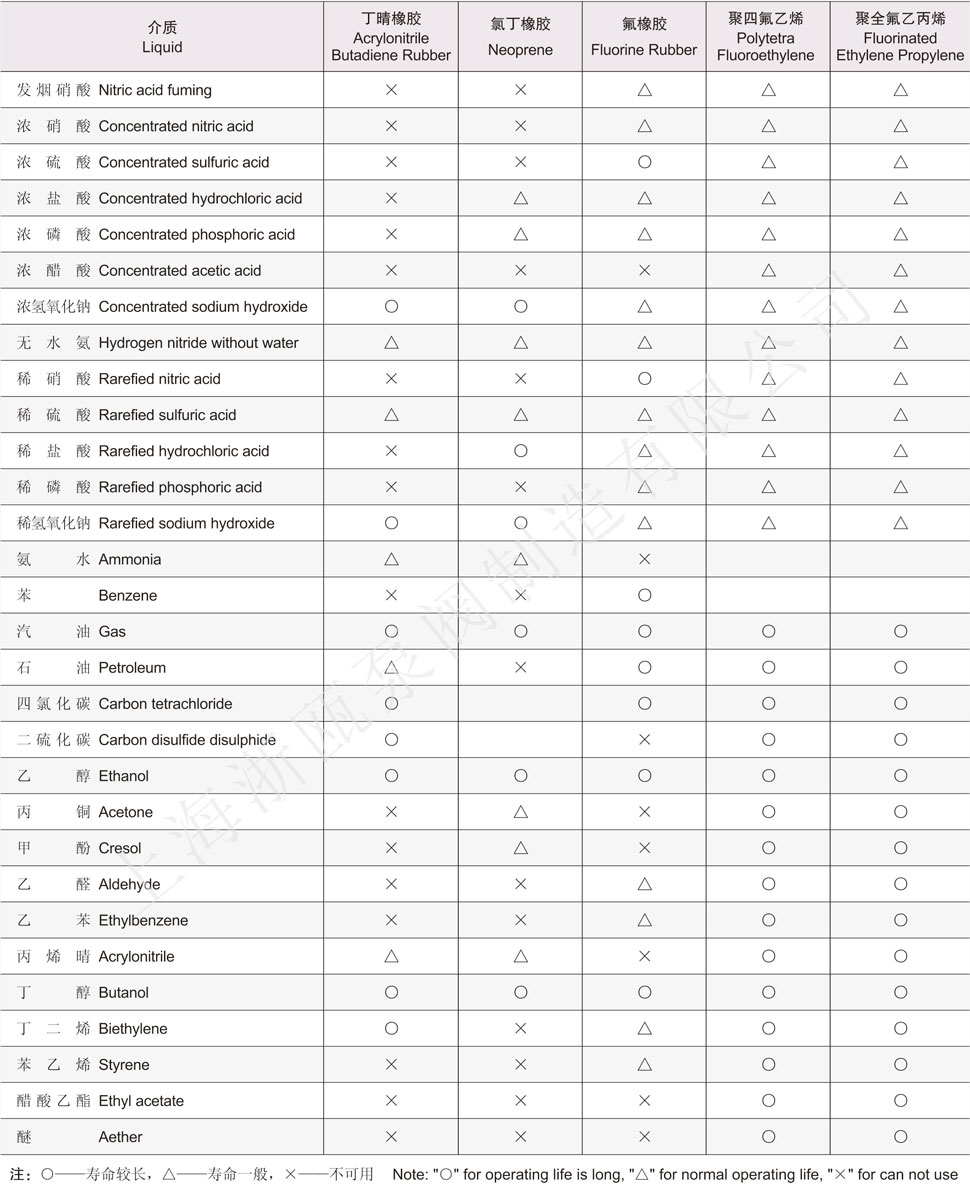 QBY氣動隔膜泵膜片材質(zhì)表: