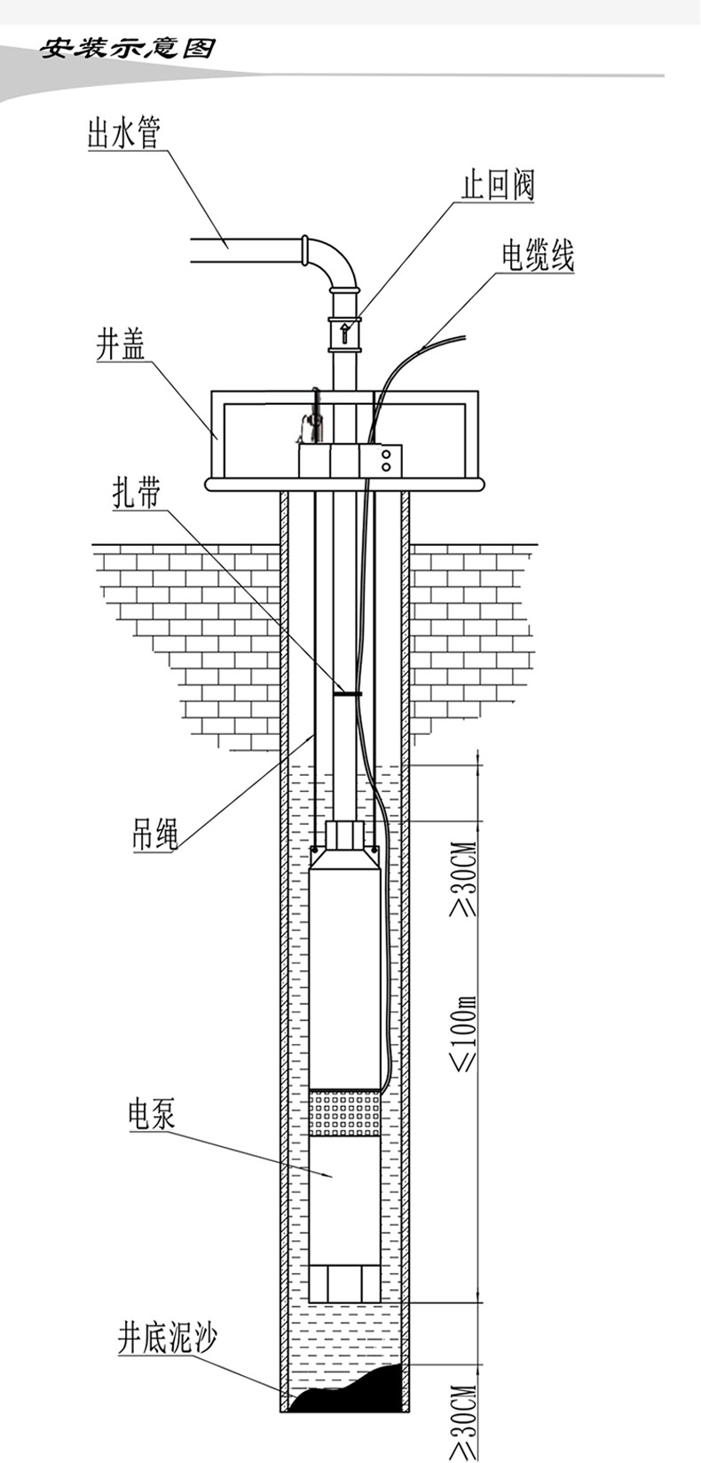 概述:QJ型井用潛水電泵是根據(jù)國家標準設計的節(jié)能產品,廣泛用于農田灌溉、工礦企業(yè)的供排水和高原、山區(qū)的人、畜用水。該型泵由QJ潛水泵和YQS型潛水電機組成一體潛入水下進行工作。具有結構簡單、體積小、重量輕、安裝、維修方便,運行安全、可靠、高效節(jié)能等特點。其特點是:電機、水泵組成一體、結構簡單、且安裝拆卸方便、安裝占地面積少。