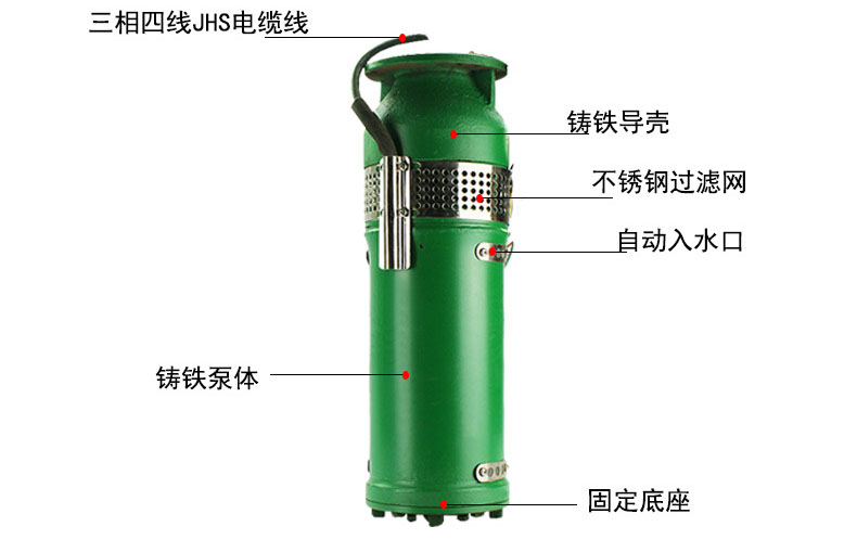5、泵采用不銹鋼濾網(wǎng)護罩,三相四線電纜。