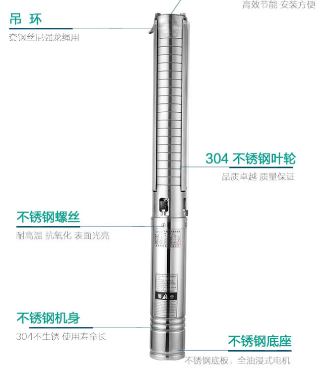 SP不銹鋼深井泵是技術(shù)生產(chǎn)的高性能耐磨型電泵,動(dòng)力部份配用先進(jìn)技術(shù)生產(chǎn)的水浸式不銹鋼潛水電機(jī),對水質(zhì)絕對無污染,是當(dāng)前國內(nèi)外深井泵之精品。選用優(yōu)質(zhì)不銹鋼外殼、軸芯、聯(lián)軸器、入水座和泵頭(或銅合金入水座、泵頭),高強(qiáng)度抗耐磨新型復(fù)合高分子材料葉輪和不銹鋼導(dǎo)流殼,全新“浮動(dòng)式”結(jié)構(gòu)葉輪在工作期間對電機(jī)無軸向壓力。特別適用于工礦業(yè)、農(nóng)業(yè)、建筑業(yè)、養(yǎng)殖業(yè)、食品飲料業(yè)及家庭式(或高層送水使用)。
