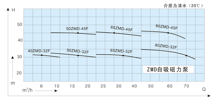 ZMD氟塑料自吸磁力泵性能曲線圖:
