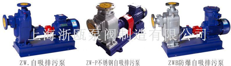 可以根據(jù)客戶不同工況需求提供不同類型泵:ZW-P不銹鋼自吸排污泵、ZW-B防爆自吸排污泵、ZW-L直連式自吸排污泵